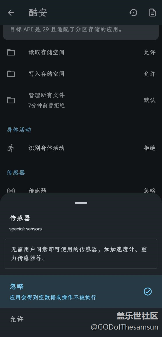 不root,通過(guò)關(guān)閉應(yīng)用權(quán)限的辦法,取消有扭一扭廣告app的傳感器權(quán)限。從而達(dá)到扭一扭廣告無(wú)法跳轉(zhuǎn)的效果。