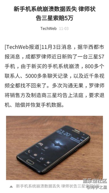 一律師因三星S7edge系統(tǒng)崩潰數(shù)據(jù)丟失索賠5萬 圖片