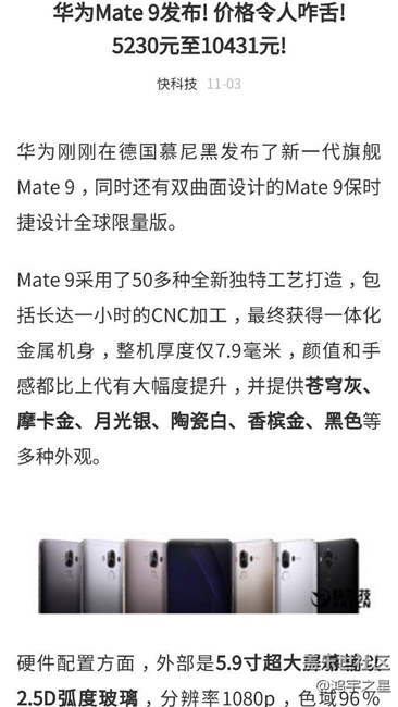 沒了Note7競爭,華為mate9要逆天了~ 圖片