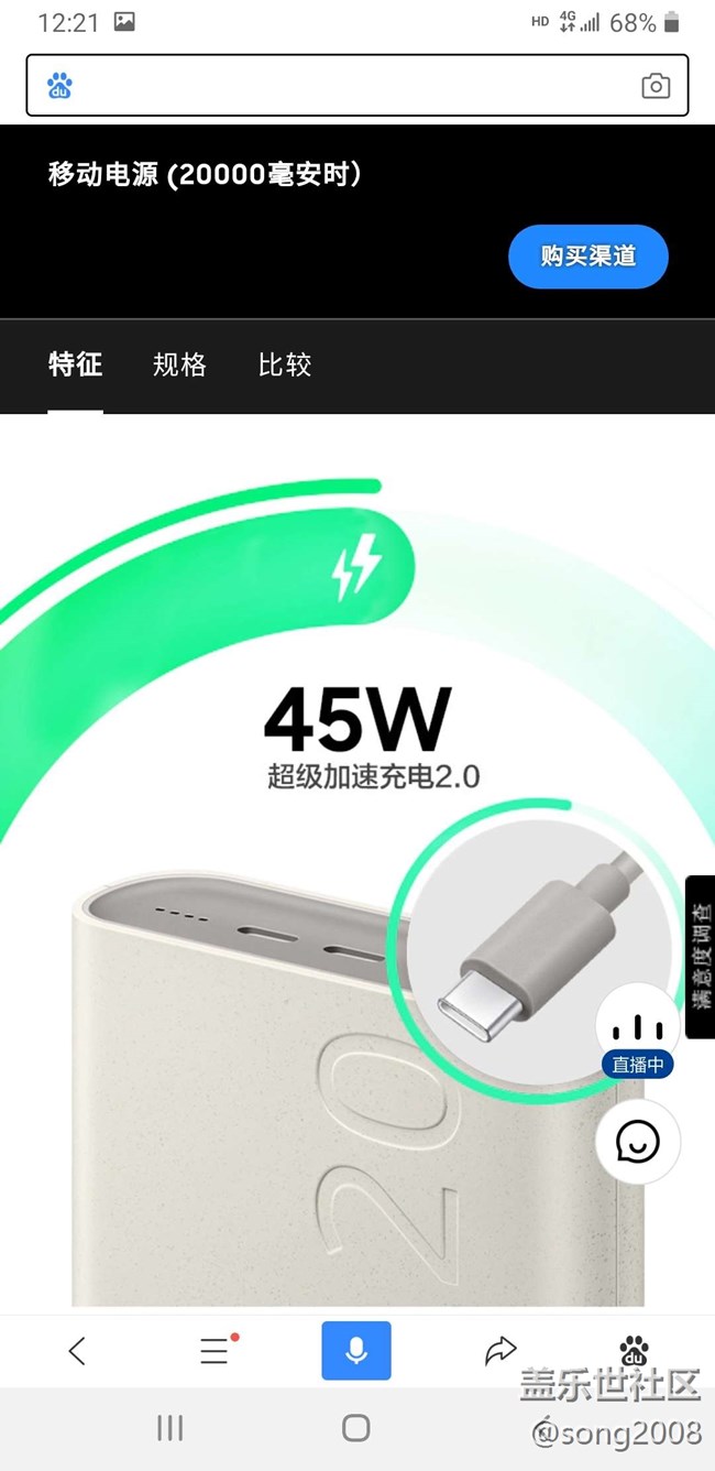 哇塞,三星45W超級快充20000mAh移動電源來啦 圖片