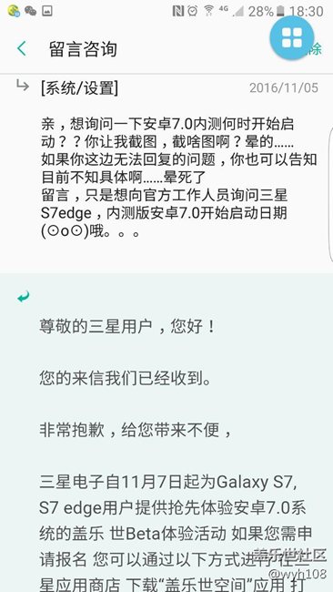 收到蓋樂世社區(qū)回復S7,S7edge的安卓7.0將要開始內測 圖片