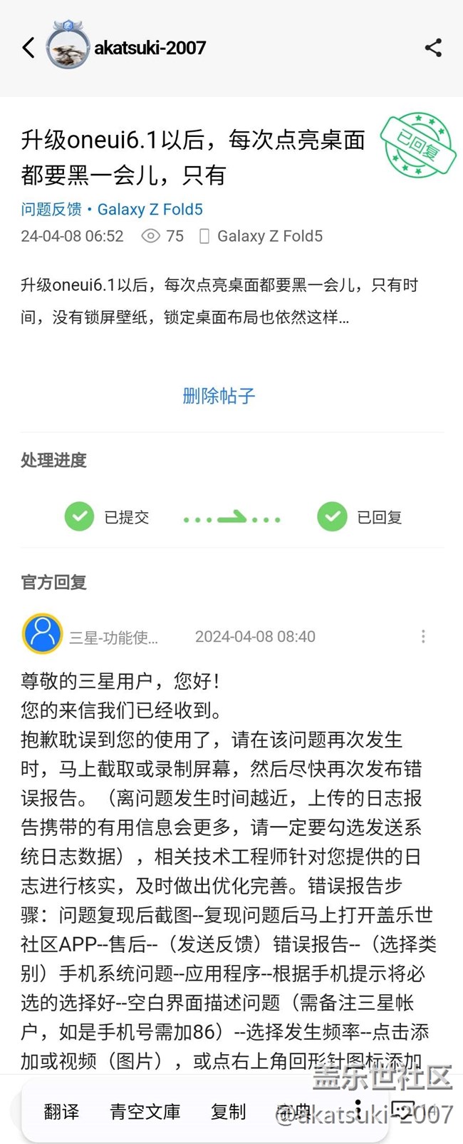 Galaxy Z 系列 ? 問(wèn)題反饋 ? Galaxy Z Fold5