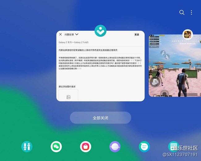 不想使用按鈕導(dǎo)航鍵了,還是左右返回手勢(shì)方便!但是就是向上滑動(dòng)返回主屏或最近使用頁面這個(gè)手勢(shì),在內(nèi)屏全屏玩游戲(和平精英)時(shí)經(jīng)常誤觸退出到主屏或最近使用頁面,很影響游戲體驗(yàn)?。?!下次補(bǔ)丁時(shí)能改成連續(xù)滑動(dòng)三次或以上才會(huì)有返回主屏或最近使用頁的提示嗎?最好是不是影響操作的提示?。。』蚴窃谟螒蛑行奶砑尤劣螒驎r(shí)連續(xù)向上滑動(dòng)手勢(shì)三次或以上才會(huì)觸發(fā)此功能或者改成內(nèi)屏全屏游戲時(shí)可以設(shè)置改成按鈕模式等?。。∫韵率欠祷氐阶罱褂庙撁鎴D片,返回到主屏沒辦法截圖!??!