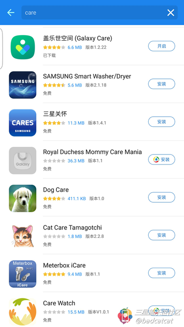首先打開(kāi)官方APP商店,按照關(guān)鍵字搜索Galaxy Care即可搜索到