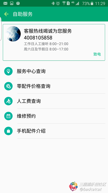 在自助服務(wù)中,我們可以看到官方400電話(huà)備忘,也可以查詢(xún)自己周邊的服務(wù)中心,并且可以預(yù)約在某個(gè)服務(wù)中心服務(wù)后再按照預(yù)約時(shí)間上門(mén),方便省時(shí)。在這里還可以查詢(xún)相關(guān)配件的官方報(bào)價(jià),以及工時(shí)費(fèi),我們?cè)僖膊挥妹谌バ蘩砹?。三星在售后這里讓我們看到了維修價(jià)格公開(kāi),工時(shí)費(fèi)用公開(kāi)的誠(chéng)意。