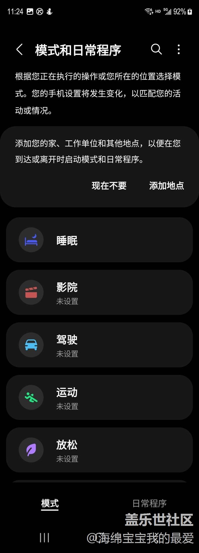 日常程序是我最喜歡的one ui里的功能,可以根據(jù)地理位置或者時(shí)間來設(shè)置最合適的手機(jī)模式,比如上班自動(dòng)禁音之類的,很實(shí)用!