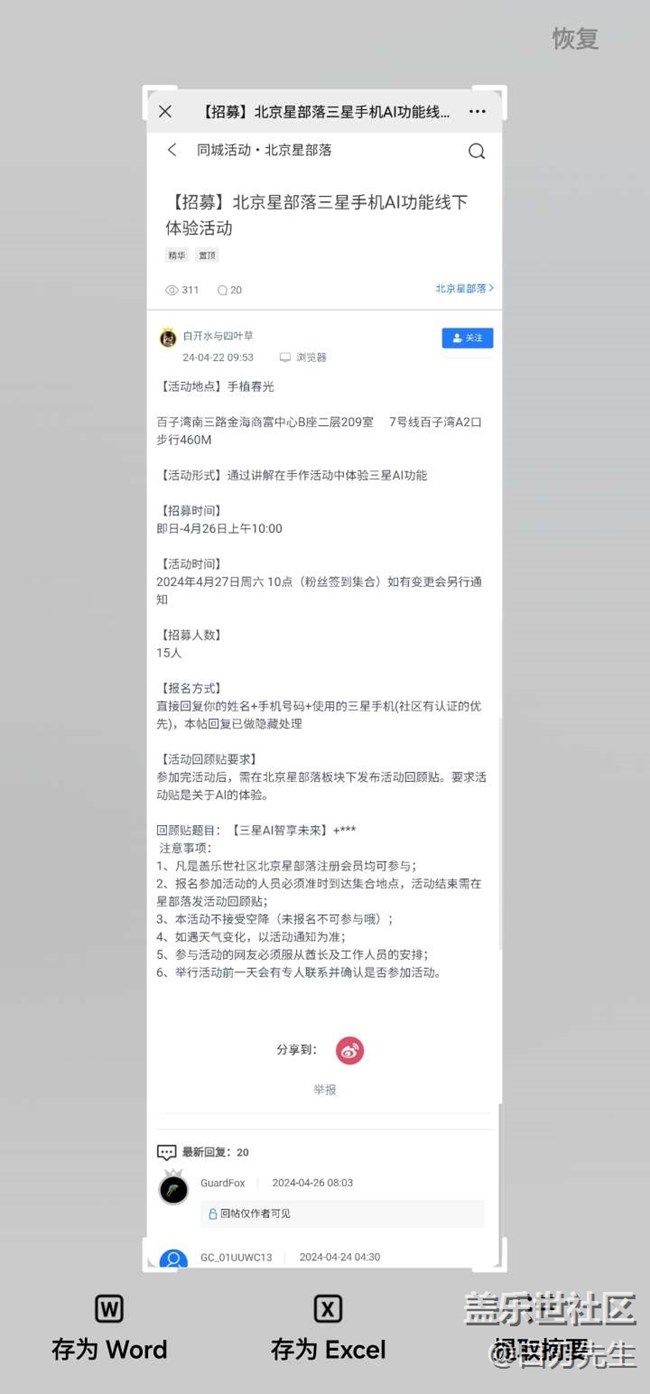 我的蓋碗創(chuàng)意蠟燭,也足以以假亂真。最后嘗試用即圈即搜里的提取摘要功能,生成活動(dòng)招募帖子的摘要。