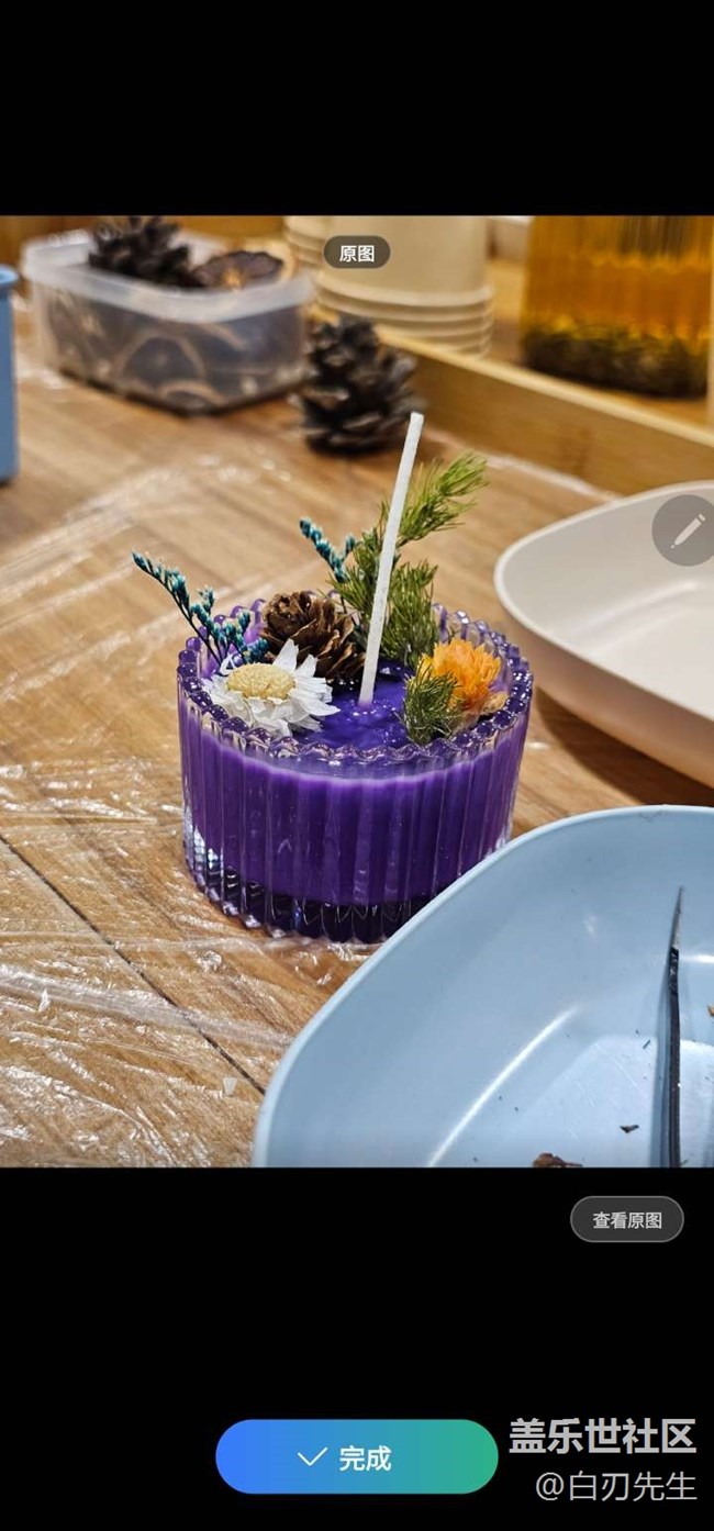 朋友正在制作創(chuàng)意蠟燭,用即圈即搜看看這是什么植物。
