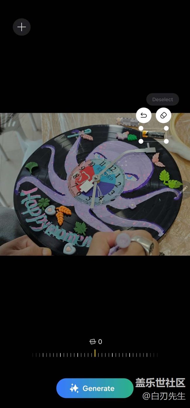 同行朋友制作的創(chuàng)意掛燈,畫(huà)的很棒哦,發(fā)現(xiàn)上方有一顆電池,用三星AI把它去掉。