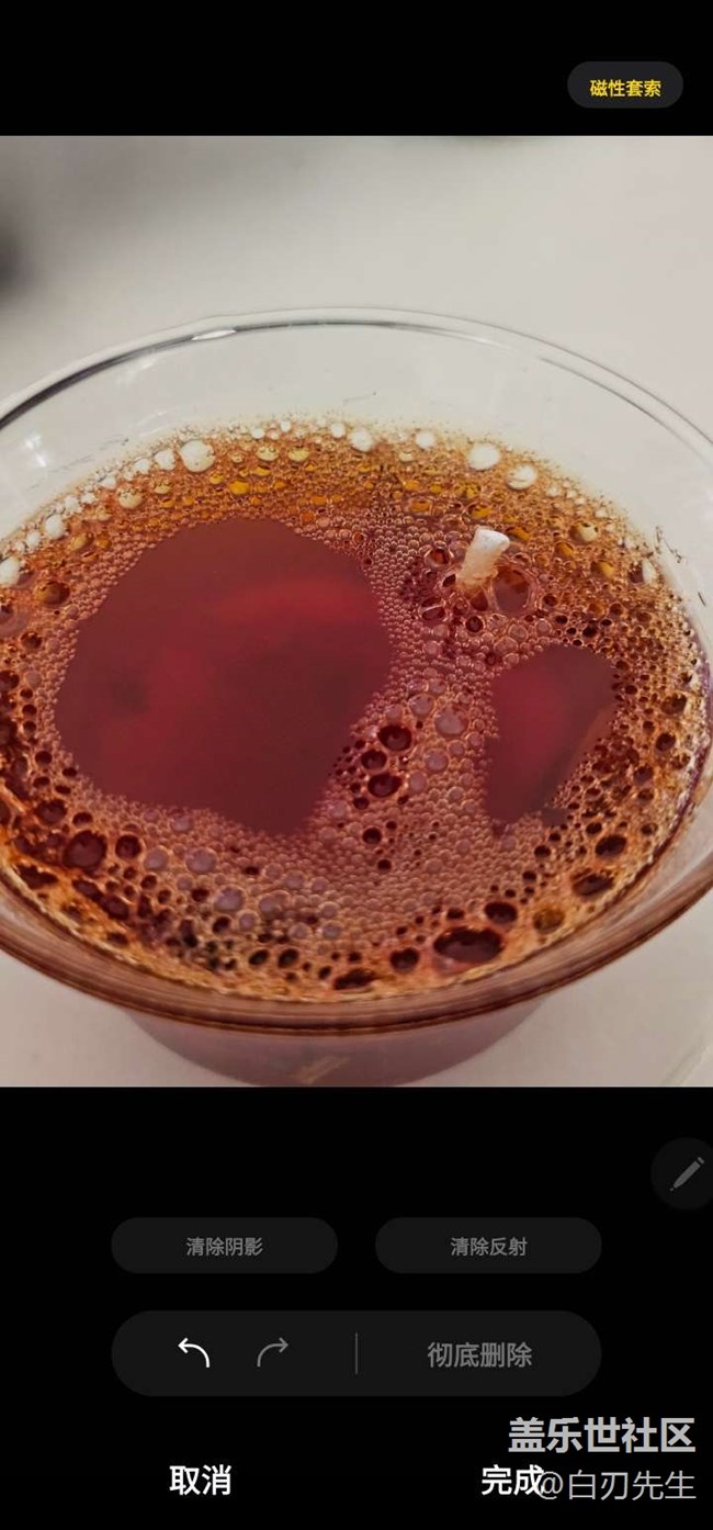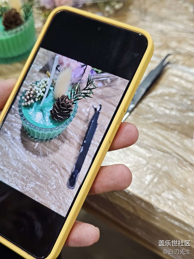 這是同行的朋友制作的創(chuàng)意蠟燭,右下角大盤(pán)子擋住了畫(huà)面,也可以嘗試用三星AI消除。