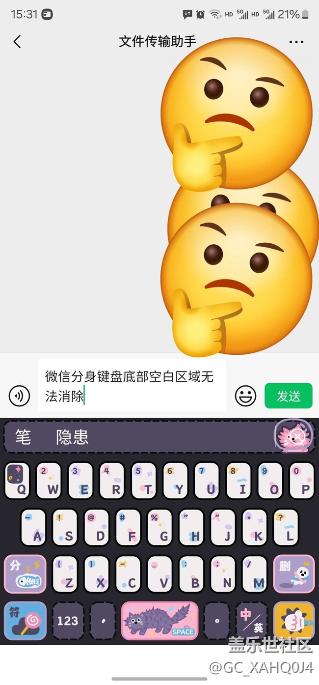 微信分身鍵盤底部空白區(qū)域無法消除 圖片