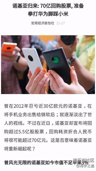 諾基亞歸來:回購70億股票 圖片