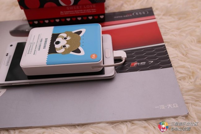 這個(gè)移動(dòng)電源是今年三星S6在成都開發(fā)布會(huì)的時(shí)候贈(zèng)送的,當(dāng)時(shí)到場(chǎng)的粉絲沒人都可以憑入場(chǎng)券隨機(jī)領(lǐng)取一個(gè),很慶幸自己拿到的是最喜歡的藍(lán)色小熊貓。