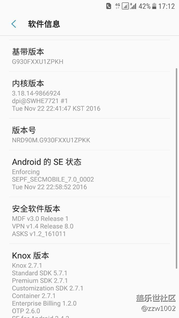 在俄羅斯淘的歐版s7直板機查詢了銷售地是烏茲別克斯坦cac上手時是波蘭的系統(tǒng)xeo!自己刷到了俄羅斯版本ser三星支付不能使用!11月9號刷了英國的7.0beta版本然后一直想通過蓋樂世注冊beta測試總是說名額已經(jīng)滿員一直沒辦法OTA升級!今天偶然點擊注冊竟然成功了馬上OTA升級!一開始是第二個版本升級90多mb再接著就是300多mb的pkk版本升級!總體升級完相對第一個版本來說是有點改變!在續(xù)航方面還是有點變化!不過不如意的還是信號問題!我用俄羅斯的運營商卡一4g信號也不是很好經(jīng)常也就一格兩格的至于volte這邊網(wǎng)絡好像還不行沒用過!wifi通話英版的也沒有!三星支付還是一如既往沒有!相對國行的通知欄流量也沒有!整體流暢度非常不錯!值得升級!
