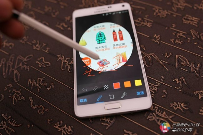繼續(xù)講解S-Pen的功能, 我們可以將區(qū)域截圖輕松的發(fā)送到QQ、微信,以及分享到微博或者微信朋友圈。
