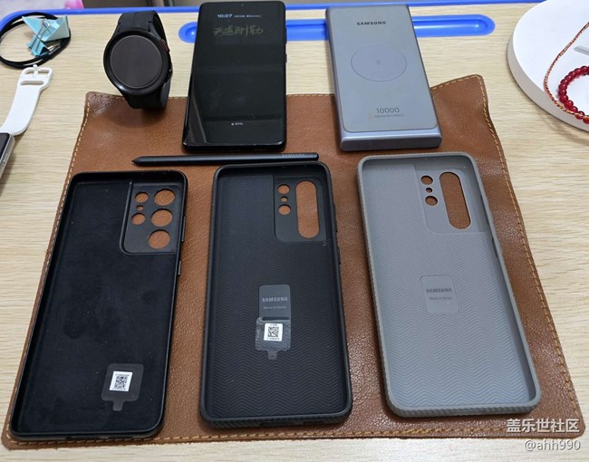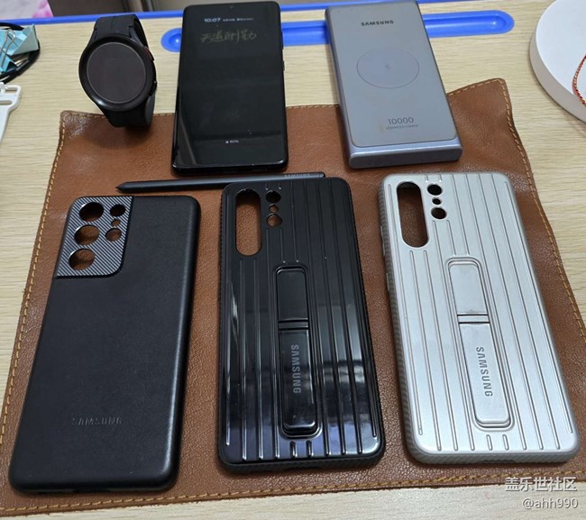 換S24U的同時(shí)購買了四個(gè)官方殼、價(jià)格依次從高到低分別為:灰色腕帶硅膠殼、黑色生態(tài)皮殼、墨紫色盾型殼、亞克力透明硬殼。今天下午分把四款官方殼套上手機(jī)進(jìn)行了體驗(yàn),希望能給到一些打算入手S24U官方殼星粉的建議,下面是個(gè)人體驗(yàn)結(jié)論:第一款官方腕帶硅膠殼用的是液態(tài)硅膠材質(zhì),手感很舒適,沒有任何異味,對(duì)手機(jī)正面邊框還是背面的攝像頭保護(hù)包裹都非常到位,背面的腕帶是伸縮調(diào)節(jié)式的,起的主要做用是支架固定,類似行李箱殼的支架功能,但功能沒有S行李箱的支架強(qiáng)大,喜歡追劇的星粉建議選這款。第二款官方生態(tài)皮殼,手感是這四款官方殼中最好的,對(duì)手機(jī)背面攝像頭保護(hù)到位,為了方便拆卸的原故,正面左右兩側(cè)沒有對(duì)邊框進(jìn)行完全包裹,是低于手機(jī)左右兩側(cè)邊框的,頂部、底部是包裹到位了的,24U生態(tài)皮殼材質(zhì)雖然不是21U那樣的牛皮,個(gè)人感覺比21U牛皮更耐用,用過21U官方皮殼的星粉都有體驗(yàn),棕色最多2個(gè)月就發(fā)黑還嬌氣,黑色雖然不會(huì)發(fā)黑,嬌氣跑不了,稍微接觸一下其它物品就會(huì)留下無法消除的痕跡,這4天我主要用的是24U的生態(tài)皮殼,生態(tài)皮材質(zhì)就不會(huì)輕易留下痕跡,只需避免跟尖銳物品接觸,追求手感舒適度的星粉建議選這款。第三款官方盾型殼,有些類似行李箱的感覺,材質(zhì)是環(huán)保塑膠類,沒有異味,對(duì)手機(jī)正面邊框和背面攝像頭的保護(hù)包裹都相當(dāng)?shù)轿?,墨紫色比較耐看,顏值雖然沒有灰白色盾型殼高,但使用時(shí)間長(zhǎng)了右側(cè)的音量鍵和關(guān)機(jī)鍵位置不會(huì)發(fā)黃,這還是賣家告訴我的,不然我也選灰白盾型殼了,追求對(duì)手機(jī)保護(hù)到位的星粉建議選這款。第四款官方亞克力透明硬殼,用的材質(zhì)是高透硬塑料,對(duì)手機(jī)正面邊框保護(hù)非常到位,背面對(duì)攝像頭的保護(hù)也還行,透明殼底部不是全包,硬殼全包手機(jī)就非常不好拆卸了,透明殼非常緊拆取時(shí)要小心一些,避免劃花手機(jī)邊框,透明殼手感比較絲滑,要注意失手滑落,硬殼旁邊的透明硅膠軟殼是購買官方透明殼時(shí)賣家贈(zèng)送的,非官方殼這里就不做評(píng)測(cè)了,追求經(jīng)濟(jì)實(shí)惠的星粉建議選這款。小結(jié)一下:22U及之前的支架式行李箱殼是功能最強(qiáng),對(duì)手機(jī)保護(hù)最到位的官方保護(hù)殼,遺憾的是從23U系列開始就不生產(chǎn)了,唯一缺點(diǎn)就是厚重了些。最后五圖是備用機(jī)21U的官方殼,棕色全新時(shí)和用了20天后前后對(duì)比,最后一圖是兩個(gè)21U官方黑色真皮殼,一個(gè)正在用已經(jīng)用了半年多了,對(duì)比用了20天的棕色殼,2021年當(dāng)時(shí)黑色、棕色都是同樣的售價(jià),真的很無語,有過這樣的體驗(yàn)后我對(duì)三星官方皮殼黑色是首選,另外一個(gè)是全新僅拆封未使用的21U官方黑色真皮殼,換24U前留做備用的,現(xiàn)在看來有些多余了