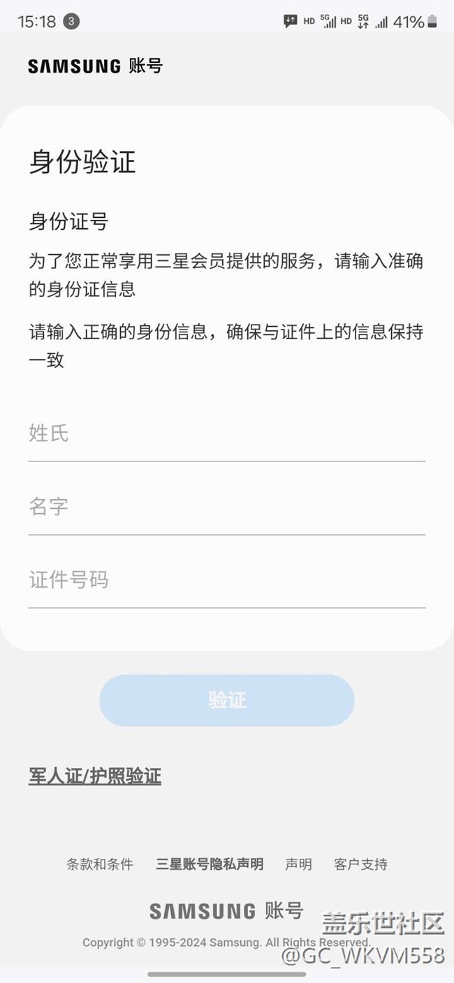 三星生活助手無法綁定身份信息 圖片