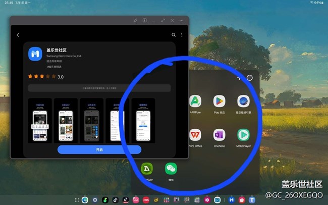 如圖所示,以前one ui 5是不會(huì)這樣的,底部app抽屜點(diǎn)開后,置于頂層,不被其它窗口擋