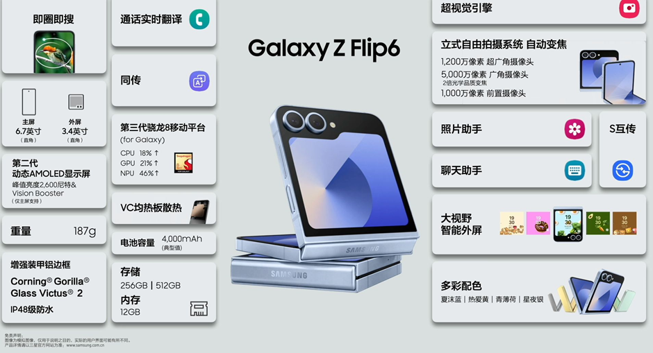 Galaxy Z Flip6帶來升級的大視野智能外屏、立式自由拍攝和更持久的續(xù)航。