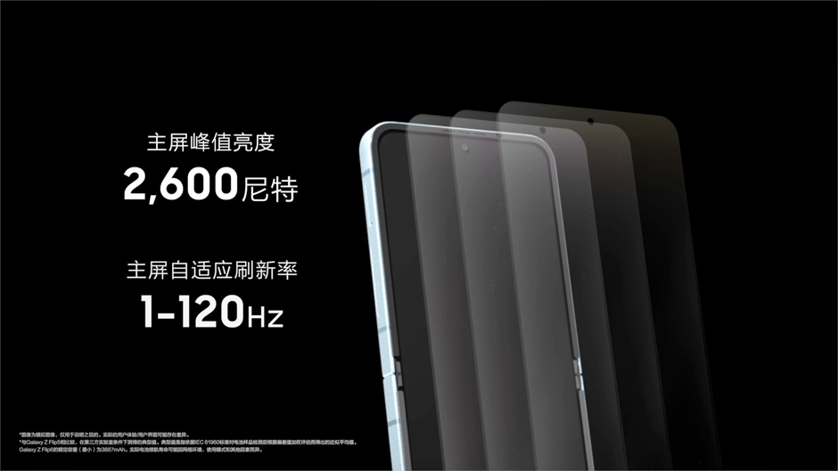 Galaxy Z Flip6擁有2600nit峰值亮度主屏幕,可以確保我們即使在強(qiáng)光的情況下,也不會影響手機(jī)的屏幕觀感。