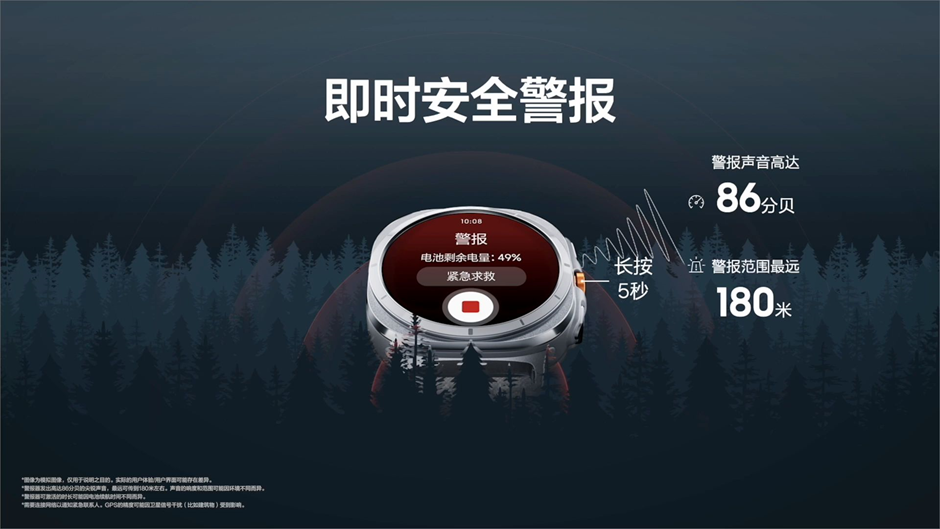 Galaxy Watch Ultra支持即時安全報警,更好的保證我們的安全。