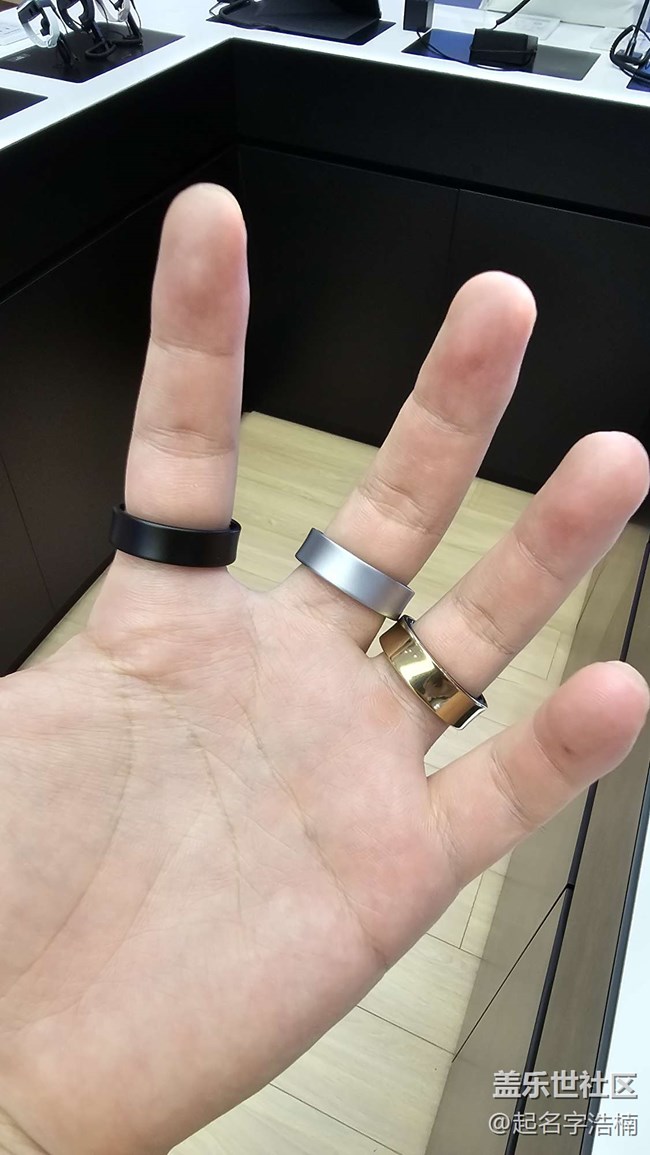 Galaxy Ring提供了金色、銀色和黑色三種配色,尺寸現(xiàn)場有測量的機器可以直接來量再選擇合適的尺寸