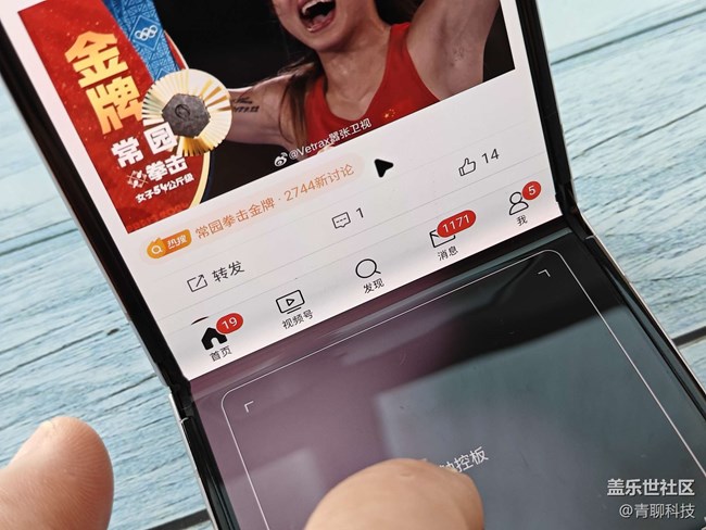 在半折疊狀態(tài)下的立式交互模式,可以進行截屏、觸控等操作,微信可以單手寫信息,發(fā)信息,看視頻的話還可以調(diào)整亮度、聲音、進度條,確實很不錯。