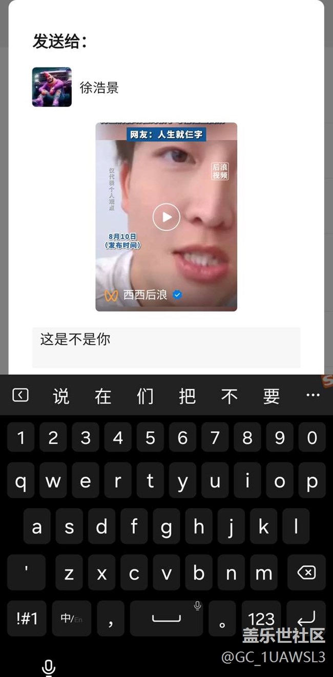 微信轉(zhuǎn)發(fā)時(shí)輸入文字信息,鍵盤無(wú)法返回。 圖片