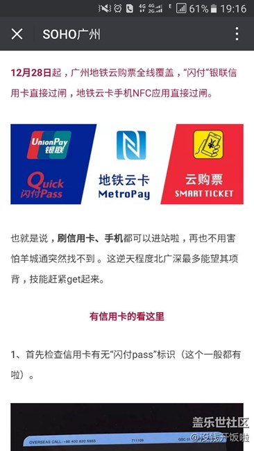 在廣州的小伙伴不用羨慕北京上海公交卡啦,廣州地鐵最終消息:12月28日起,廣州地鐵所有站支持銀聯(lián)云閃付功能~!意思就是說只要你的手機(jī)有NFC功能,安裝對應(yīng)APP或者三星pay,apple pay就能直接過閘機(jī)呢??,不用苦等三星pay的公交卡功能啦??~
