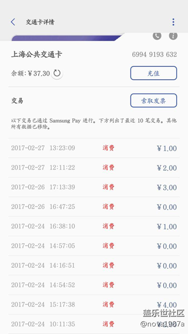 Samsungpay的公交卡在魔都地鐵總出狀況 圖片