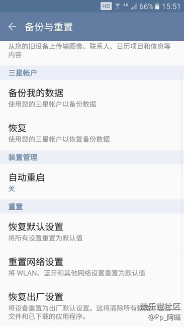 大家在升級7.0以后,可以嘗試恢復(fù)出廠設(shè)置,體驗最新的系統(tǒng)功能。因為在舊版本升級新版本以后,很多新版本功能因為舊版本系統(tǒng)升級后依然殘留很多內(nèi)容而沒能好好體驗,多數(shù)人會選擇雙清,但是進(jìn)去Recovery界面雙清(硬雙清)會容易導(dǎo)致三星賬號被鎖定。所以,請大家盡量在手機(jī)設(shè)置,找到恢復(fù)出廠設(shè)置(軟性雙清),直接通過賬號密碼恢復(fù)出廠設(shè)置,這樣也不會導(dǎo)致異常賬號鎖定。