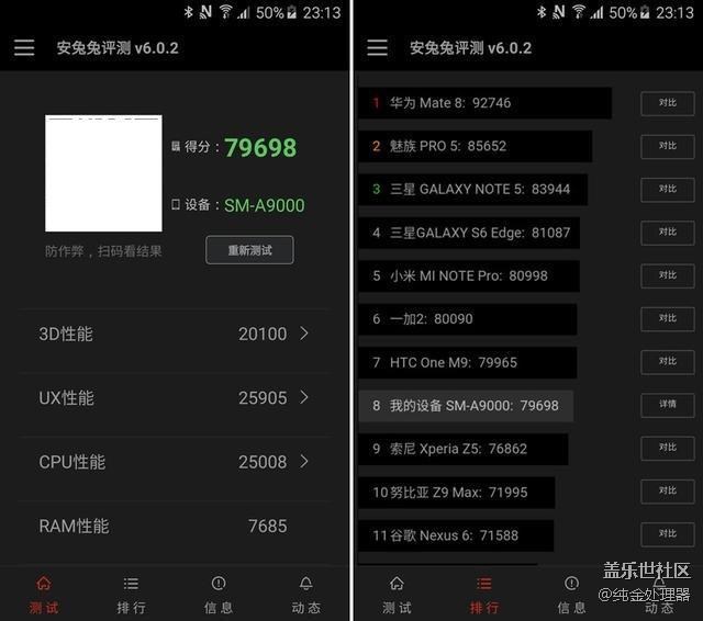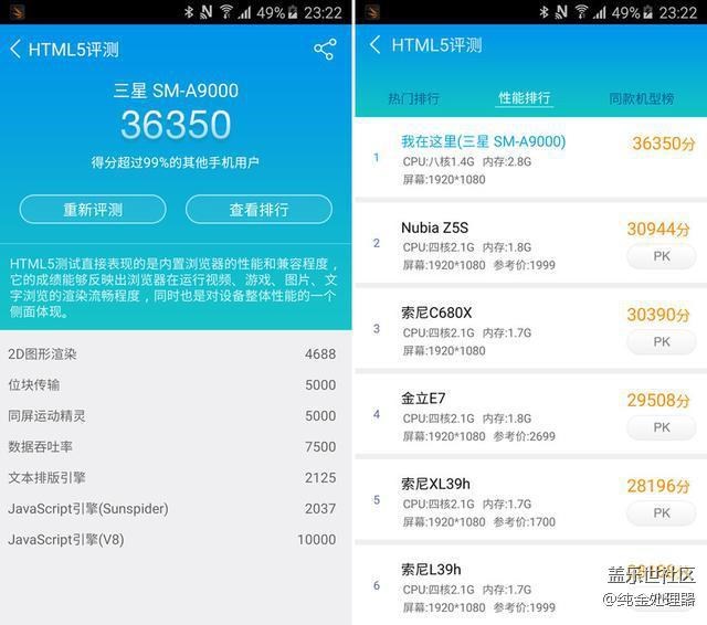 魯大師的測(cè)試成績同樣是讓人振奮的,HTML5上的表現(xiàn)更加證明了三星Galaxy A9是一臺(tái)為娛樂而生的手機(jī)。