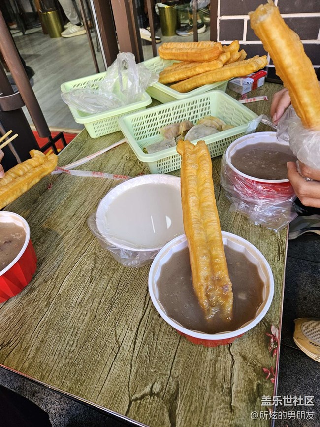 早上先和小伙伴們一起匯合,來(lái)品嘗臨沂人的早餐——糝,糝是胡椒口味的牛骨頭濃湯,熬了整整一夜,配上油條,實(shí)在是太好吃了