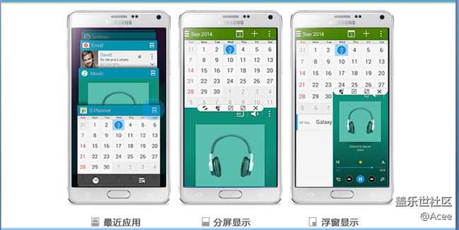 Samsung 推出的隨心多窗口功能,擁有全屏顯示、分屏顯示、浮窗顯示、最小化顯示多窗口、相互間可無縫自由切換、實(shí)現(xiàn)手機(jī)屏幕的多任務(wù)處理 ,以下以Note4為例進(jìn)行講解: