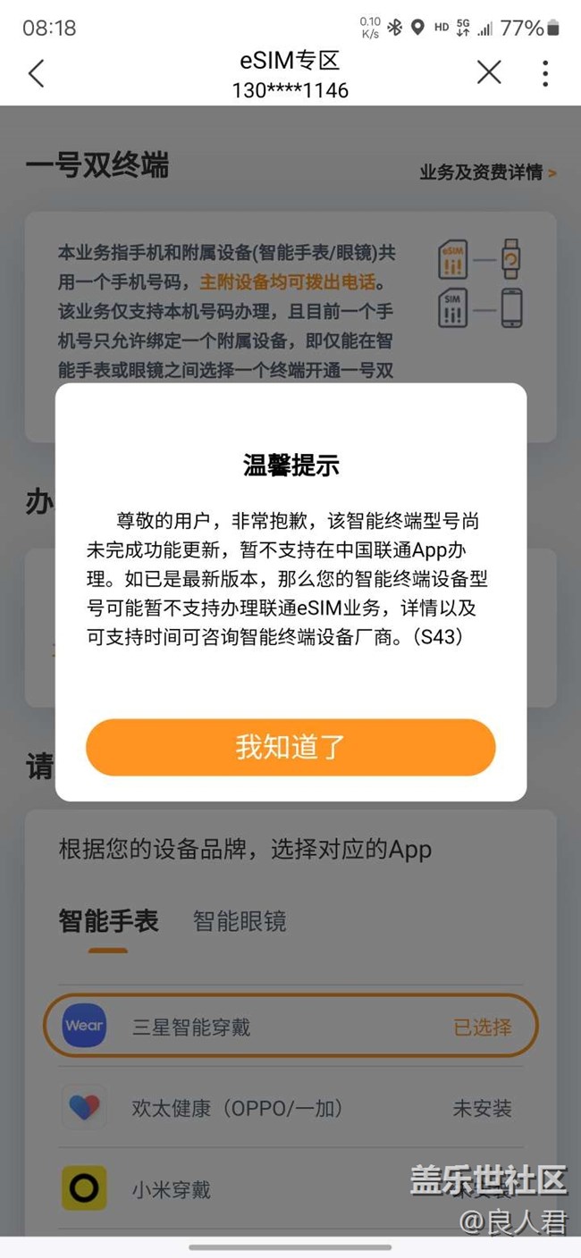 Watch4 Classic lte版辦不了聯(lián)通esim 圖片