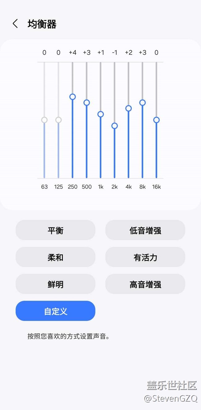 在揚(yáng)聲器模式下,均衡器63Hz和125Hz無(wú)法調(diào)節(jié)