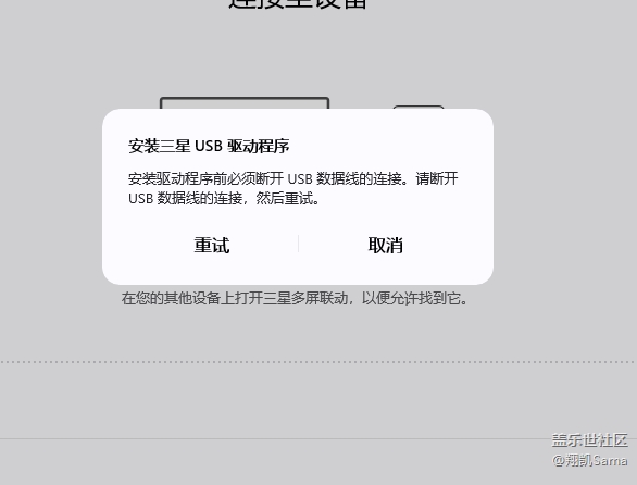 電腦是windows11系統(tǒng)。手機(jī)是one ui6.0。想用usb模式連接多屏聯(lián)動(dòng)。用的是他自己下載安裝的,官方驅(qū)動(dòng)安裝不上。