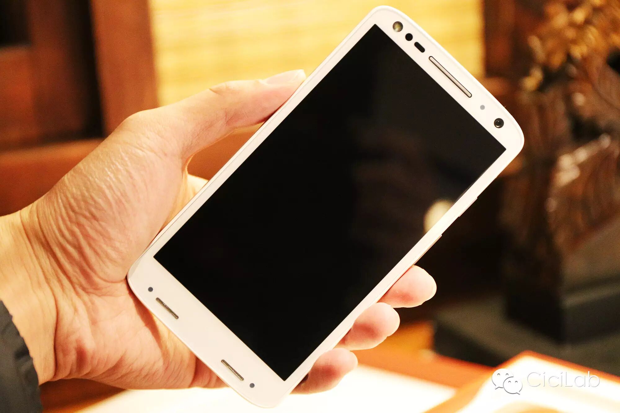 圖為摩托羅拉的Moto X級(X Force/Droid Turbo 2)白色的前面板。