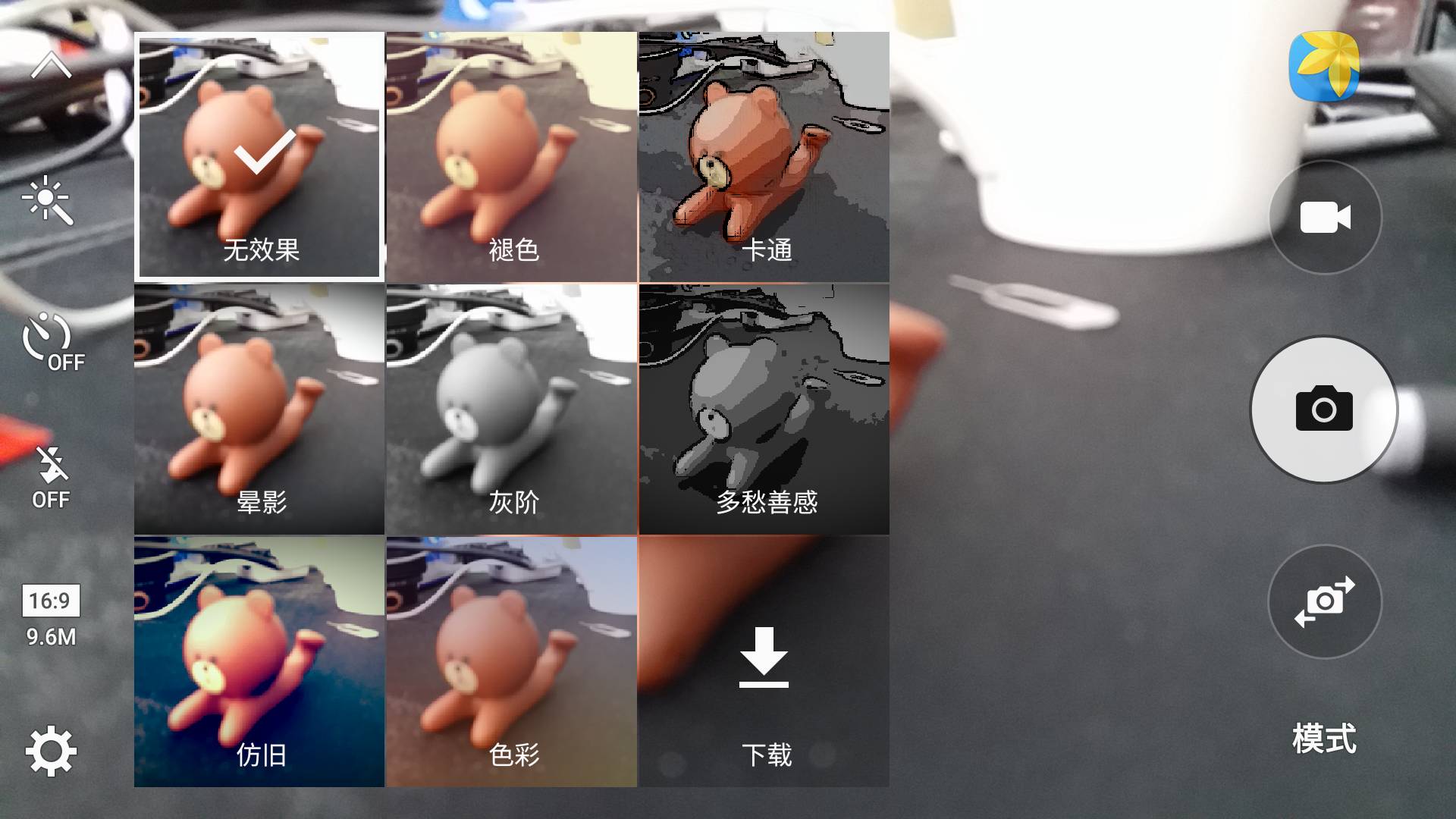 通過雙擊HOME鍵就可以快速啟動相機,界面也是通俗易懂,看圖就基本能夠判斷對應(yīng)功能(經(jīng)常玩數(shù)碼相機相關(guān)的話),自帶的濾鏡還是比較有趣的,下文會放出一些通過濾鏡拍攝的照片,而我以為“下載”是可以直接跳轉(zhuǎn)到更多濾鏡下載,結(jié)果直接條抓難道三星市場里讓我下載其他APP也是讓我醉生夢死的了……