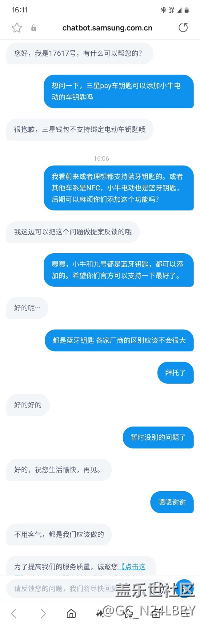 帖子名稱(chēng) 希望三星錢(qián)包官方可以添加小牛和九號(hào)的藍(lán)牙車(chē)鑰匙