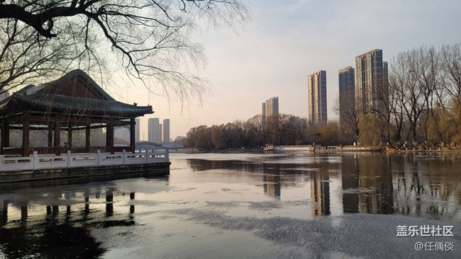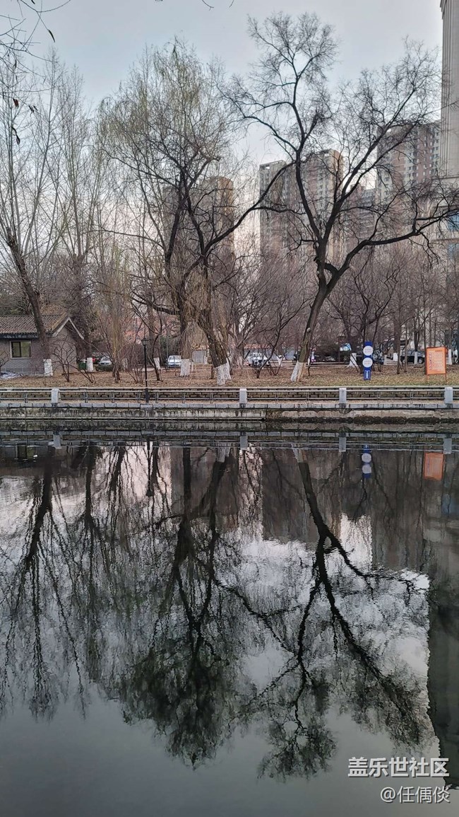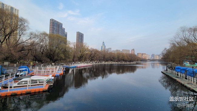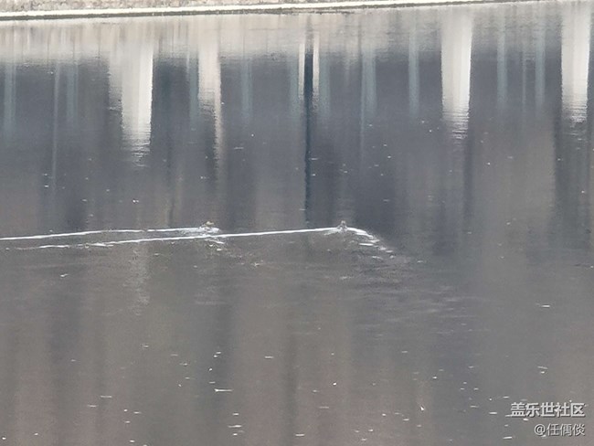 風(fēng)有些大,湖面倒影沒夏天那般寧靜,也有別樣的感覺,甚至還有野鴨成對的浮游滑行,十分愜意。