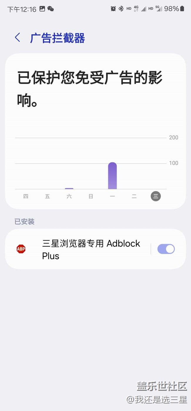 三星瀏覽器打開去廣告插件選項(xiàng)