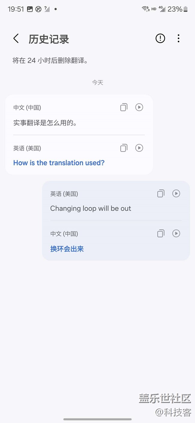 大家春節(jié)準備出國玩嗎?三星的同傳和實時翻譯功能一定要get到。其中,同傳用于面對面翻譯,實時翻譯用于打電話翻譯,在頂部快捷欄就都可以開啟,很方便。在ai加持下,三星翻譯很快,準確,還很貼心準備了翻轉(zhuǎn)的功能,可以很方便和外國人溝通,不會英文也能勇闖天涯大家可以去試試。