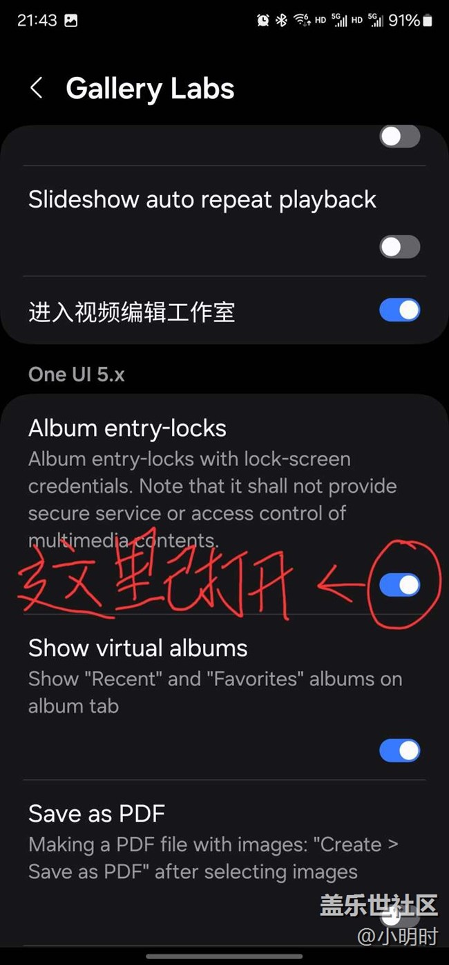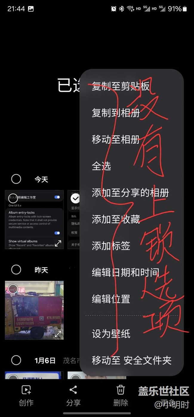 看了網(wǎng)上設置教程,在我手機上一步步設置下來就沒有Lock album這個選項,找不到呢,有知道的機友指點一下,謝謝啦!