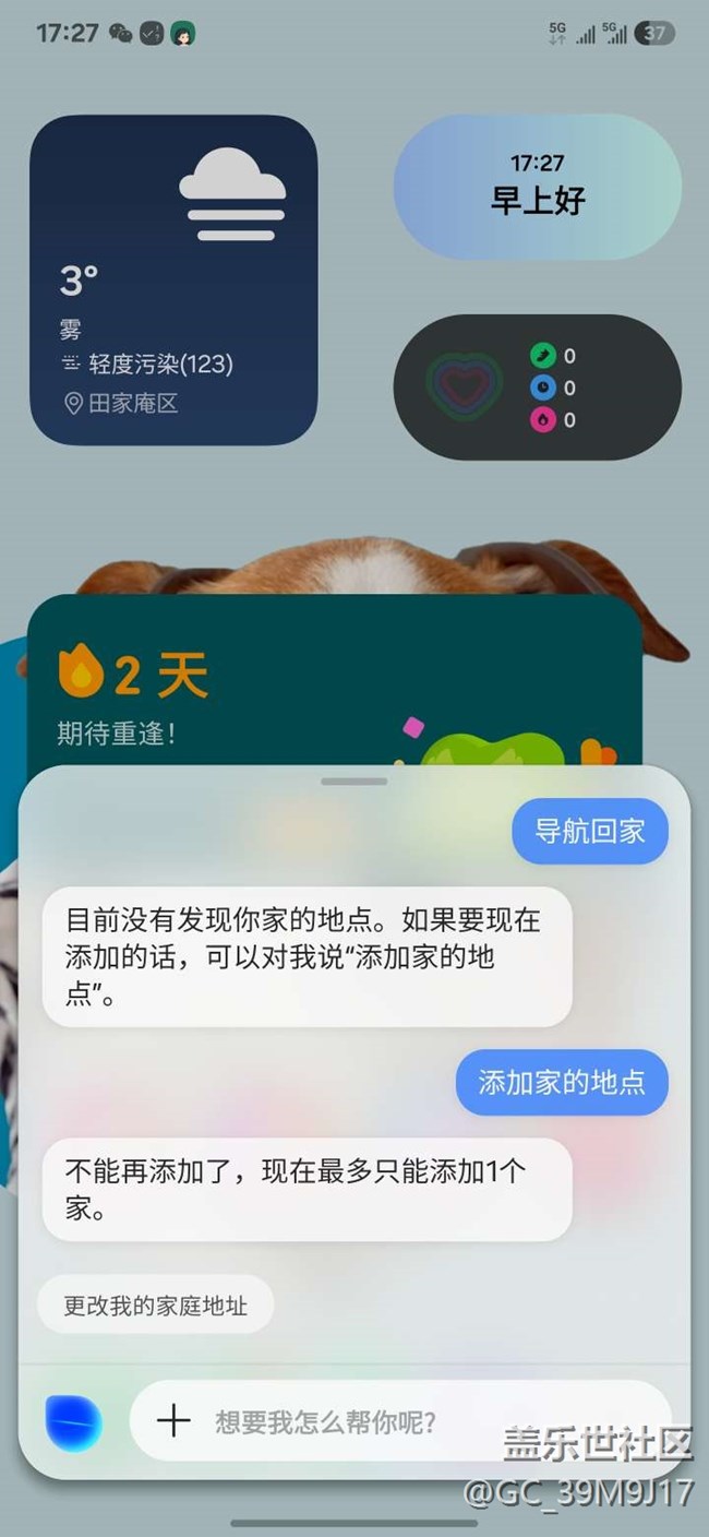 3.這個純純BUG,我說導航回家,說我沒有家的位置,添加了,位置,還說我沒有家的位置????關(guān)鍵我下班了三星助手都提醒我回家(且標注出了家的位置),語音助手不知道