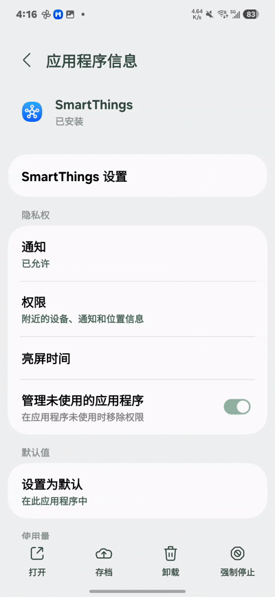 選擇你要“存檔”的應用,這里我以SmartThings為例,選擇底部的存檔功能