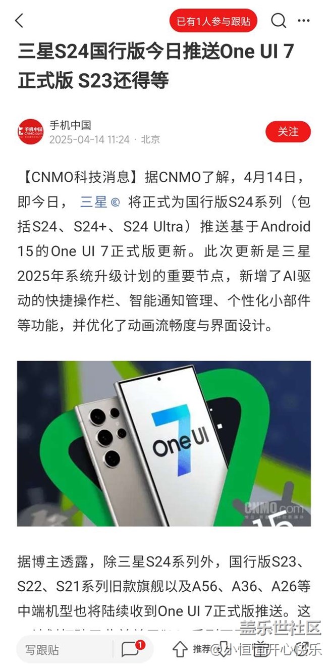 號(hào)外號(hào)外 24升級(jí)oneui7了 圖片