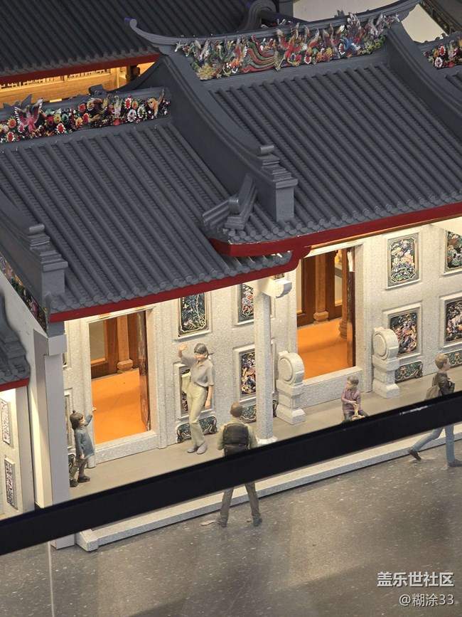 館內(nèi)建筑模型精巧細(xì)致,灰瓦覆頂,白墻映目,飛檐高挑,盡顯嶺南建筑的獨(dú)特風(fēng)姿。屋脊之上,灰塑工藝大放異彩,花鳥栩栩如生,人物故事躍然其上,斑斕色彩與細(xì)膩線條,訴說著匠人們的卓絕技藝與執(zhí)著堅(jiān)守。