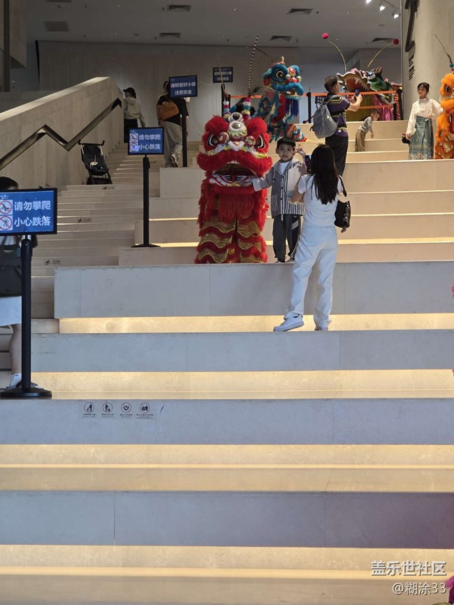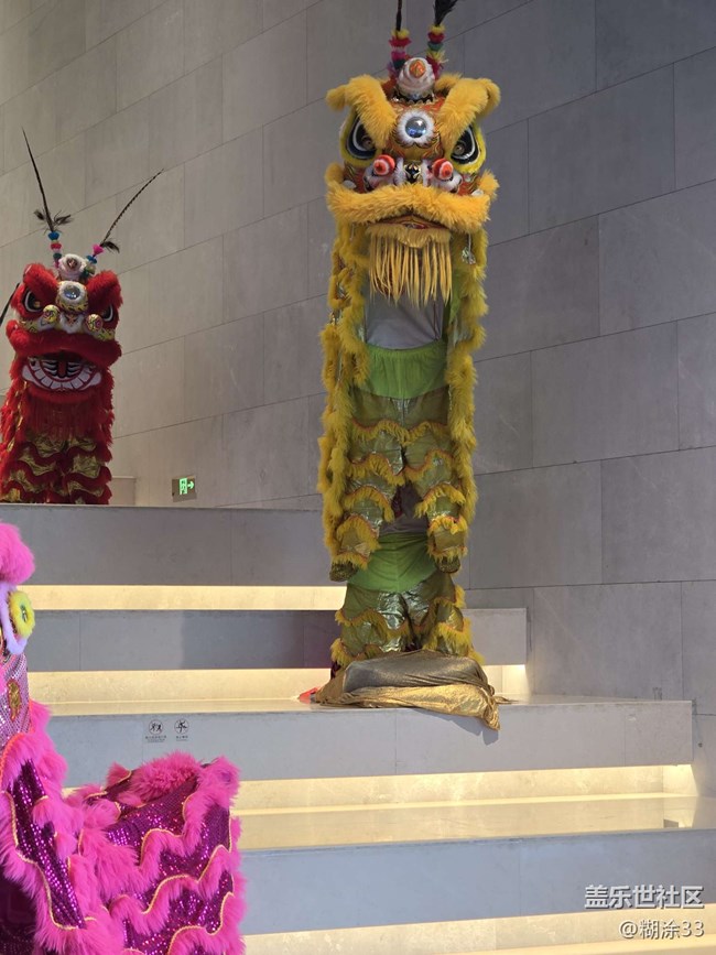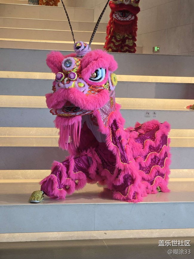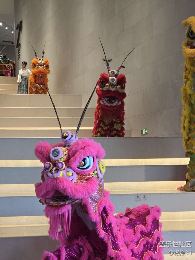 那一只只舞獅,造型精巧,毛發(fā)濃密柔軟。黃色舞獅閃耀著金色光芒,盡顯華貴;粉色舞獅俏皮可愛,打破傳統(tǒng)印象;經典的紅色舞獅,更是威嚴中透著喜慶。它們或靜置于臺階,或與參觀者互動,每一處細節(jié),從炯炯有神的雙目到精致的裝飾,都訴說著工匠的用心。