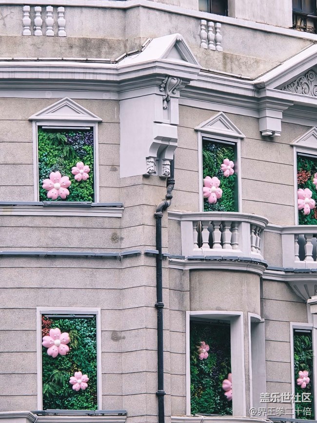 這里的建筑物造型很別致,旁邊樓上的窗戶還有著櫻花??裝飾